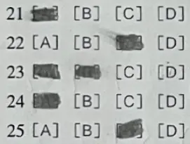 使用opencv numpy 来进行答题卡识别,方法有很多种,比如使用边缘检测,特征检测,但是在我之前尝试过的效果都不甚理想,示例图如下: